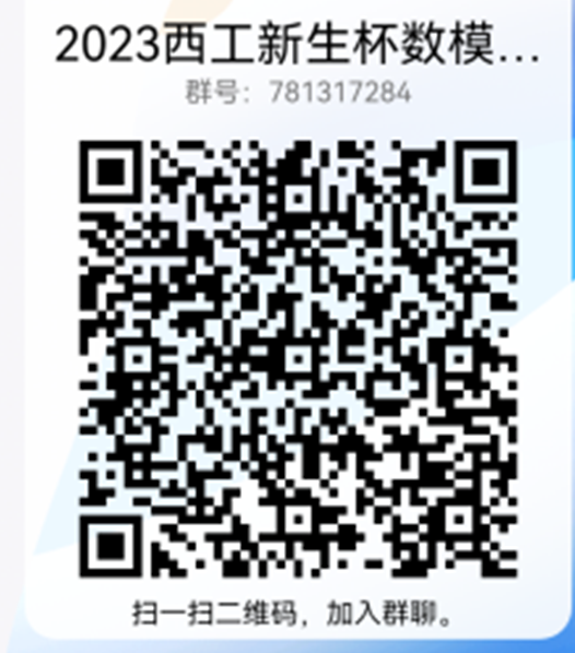 2、报名方式:微信扫描下方二维码报名,并加入“2023西工新生杯数模竞赛”竞赛官方QQ群:781317284 。